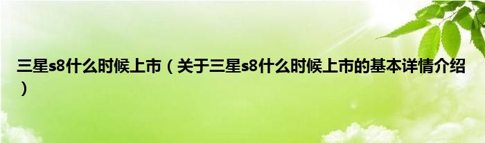 本文关于三星s8什么时候上市的基本详情介绍就讲解完毕,希望对大家有所帮助。