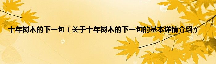 本文关于十年树木的下一句的基本详情介绍就讲解完毕,希望对大家有所帮助。