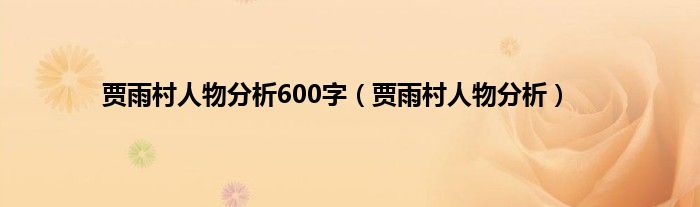 以上就是【贾雨村人物分析600字,贾雨村人物分析】相关内容。