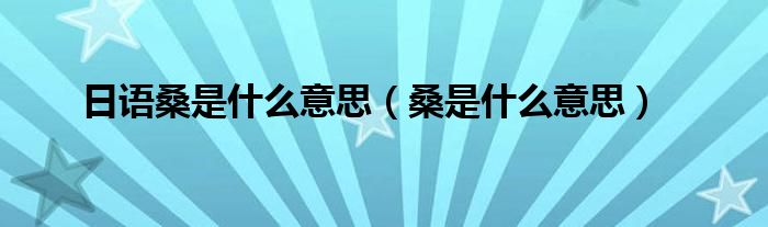 以上就是【日语桑是什么意思,桑是什么意思】相关内容。