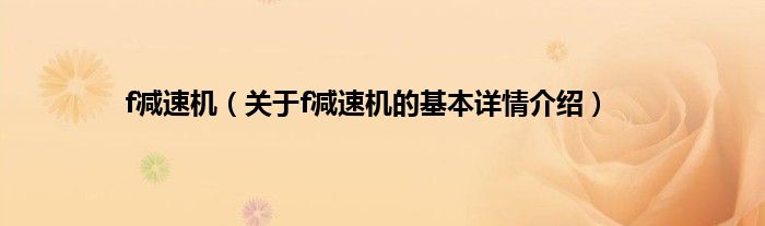 本文关于f减速机的基本详情介绍就讲解完毕,希望对大家有所帮助。