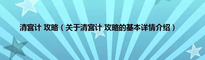 本文关于清宫计 攻略的基本详情介绍就讲解完毕,希望对大家有所帮助。