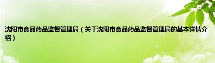 本文关于沈阳市食品药品监督管理局的基本详情介绍就讲解完毕,希望对大家有所帮助。