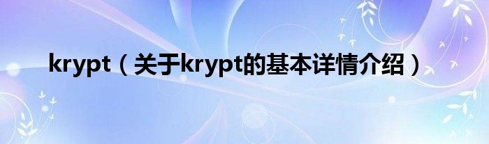 本文关于krypt的基本详情介绍就讲解完毕,希望对大家有所帮助。
