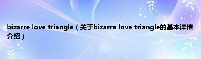 本文关于bizarre love triangle的基本详情介绍就讲解完毕,希望对大家有所帮助。