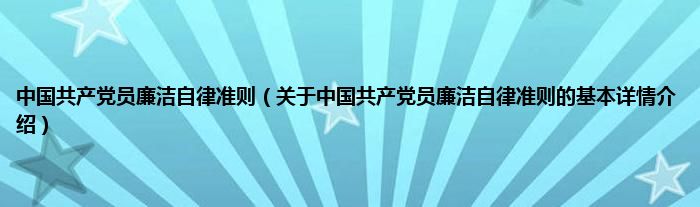 本文关于中国共产党员廉洁自律准则的基本详情介绍就讲解完毕,希望对大家有所帮助。