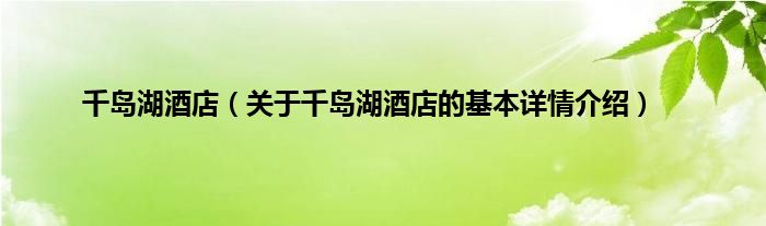 本文关于千岛湖酒店的基本详情介绍就讲解完毕,希望对大家有所帮助。
