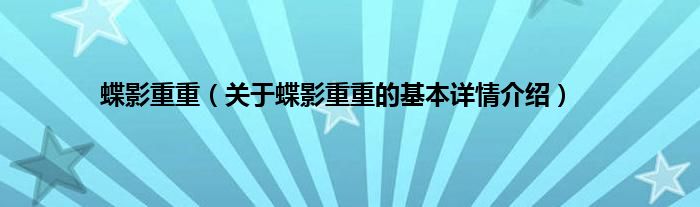 本文关于蝶影重重的基本详情介绍就讲解完毕,希望对大家有所帮助。