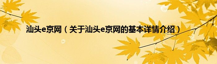 本文关于汕头e京网的基本详情介绍就讲解完毕,希望对大家有所帮助。