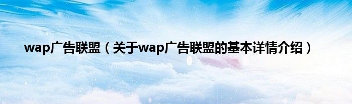 本文关于wap广告联盟的基本详情介绍就讲解完毕,希望对大家有所帮助。