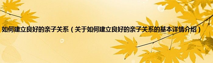 本文关于如何建立良好的亲子关系的基本详情介绍就讲解完毕,希望对大家有所帮助。