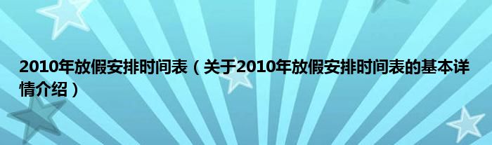 本文关于2010年放假安排时间表的基本详情介绍就讲解完毕,希望对大家有所帮助。