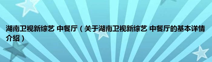 本文关于湖南卫视新综艺 中餐厅的基本详情介绍就讲解完毕,希望对大家有所帮助。
