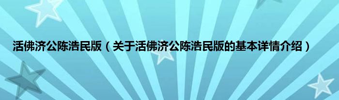 本文关于活佛济公陈浩民版的基本详情介绍就讲解完毕,希望对大家有所帮助。