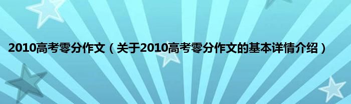 本文关于2010高考零分作文的基本详情介绍就讲解完毕,希望对大家有所帮助。