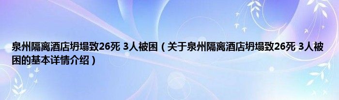 本文关于泉州隔离酒店坍塌致26死 3人被困的基本详情介绍就讲解完毕,希望对大家有所帮助。
