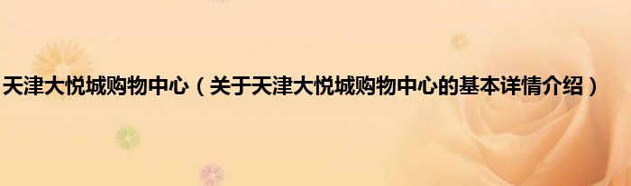 本文关于天津大悦城购物中心的基本详情介绍就讲解完毕,希望对大家有所帮助。