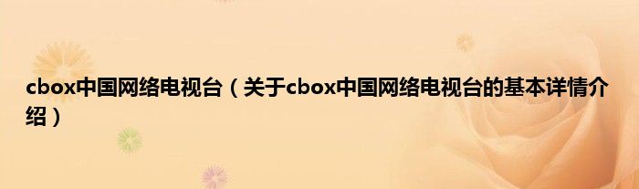 本文关于cbox中国网络电视台的基本详情介绍就讲解完毕,希望对大家有所帮助。
