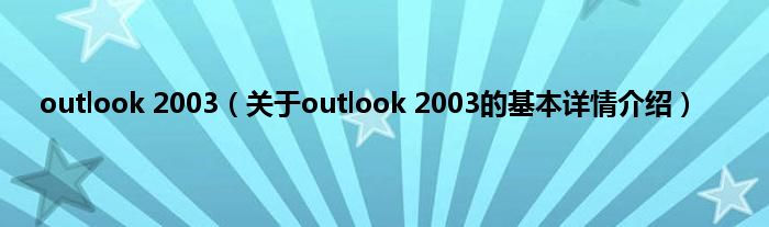 本文关于outlook 2003的基本详情介绍就讲解完毕,希望对大家有所帮助。