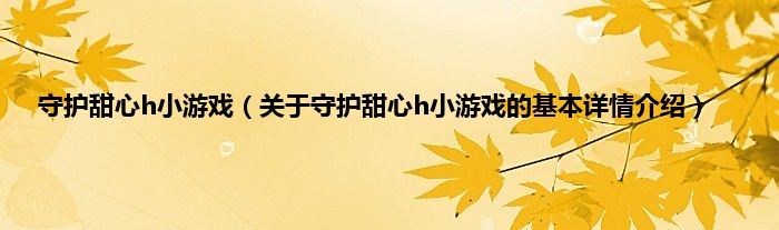 本文关于守护甜心h小游戏的基本详情介绍就讲解完毕,希望对大家有所帮助。