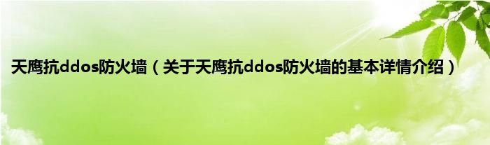 本文关于天鹰抗ddos防火墙的基本详情介绍就讲解完毕,希望对大家有所帮助。