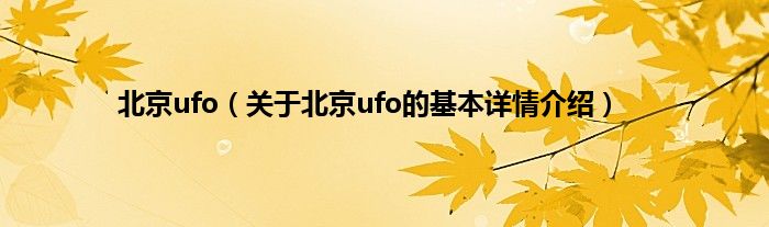 本文关于北京ufo的基本详情介绍就讲解完毕,希望对大家有所帮助。