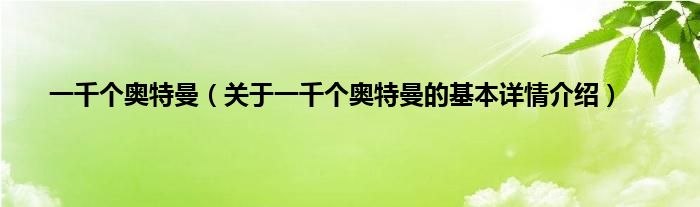 本文关于一千个奥特曼的基本详情介绍就讲解完毕,希望对大家有所帮助。