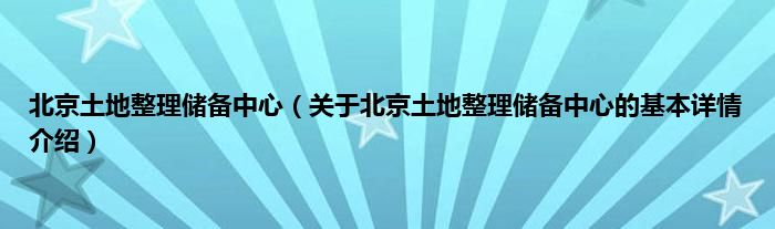 本文关于北京土地整理储备中心的基本详情介绍就讲解完毕,希望对大家有所帮助。