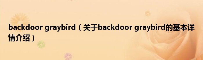 大家好我是小蝌蚪,backdoor graybird,关于backdoor graybird的基本详情介绍很多人还不知道,那么现在让我们一起来看看吧!