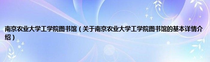 本文关于南京农业大学工学院图书馆的基本详情介绍就讲解完毕,希望对大家有所帮助。