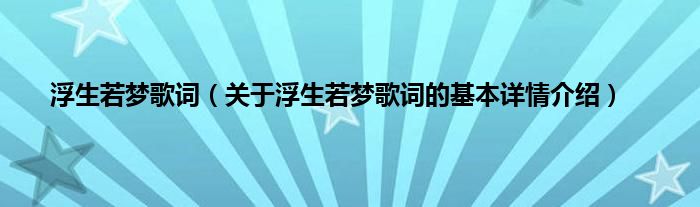 本文关于浮生若梦歌词的基本详情介绍就讲解完毕,希望对大家有所帮助。
