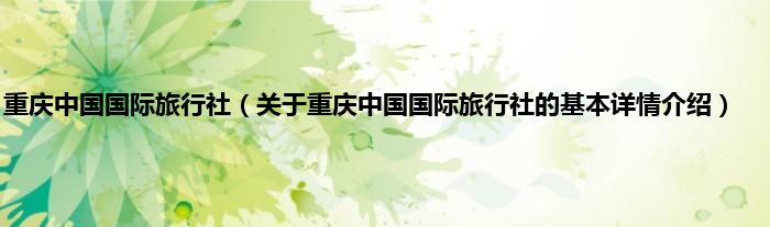 本文关于重庆中国国际旅行社的基本详情介绍就讲解完毕,希望对大家有所帮助。