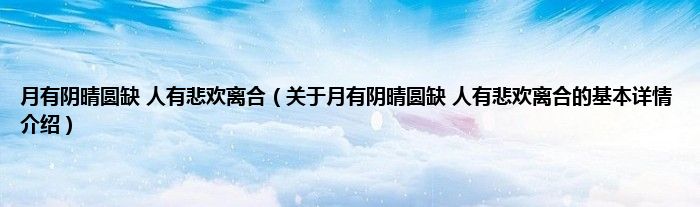 本文关于月有阴晴圆缺 人有悲欢离合的基本详情介绍就讲解完毕,希望对大家有所帮助。