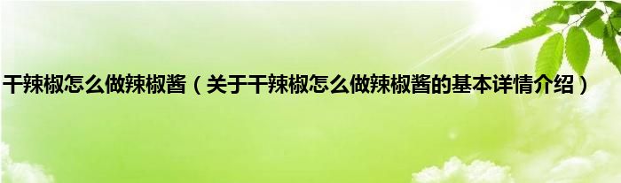 本文关于干辣椒怎么做辣椒酱的基本详情介绍就讲解完毕,希望对大家有所帮助。