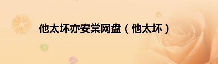 大家好,小问来为大家解答以上问题。他太坏亦安棠网盘,他太坏这个很多人还不知道,现在让我们一起来看看吧!
