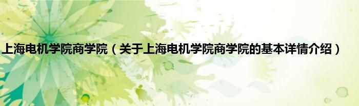 上海电机学院商学院(关于上海电机学院商学院的基本详情介绍)