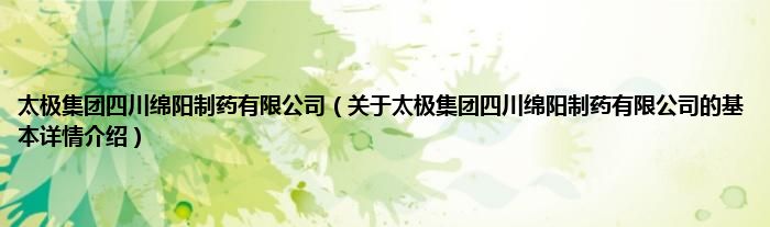 本文关于太极集团四川绵阳制药有限公司的基本详情介绍就讲解完毕,希望对大家有所帮助。