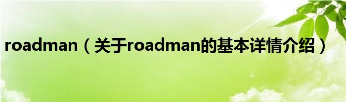 本文关于roadman的基本详情介绍就讲解完毕,希望对大家有所帮助。