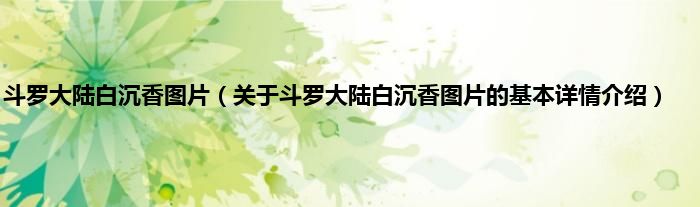本文关于斗罗大陆白沉香图片的基本详情介绍就讲解完毕,希望对大家有所帮助。