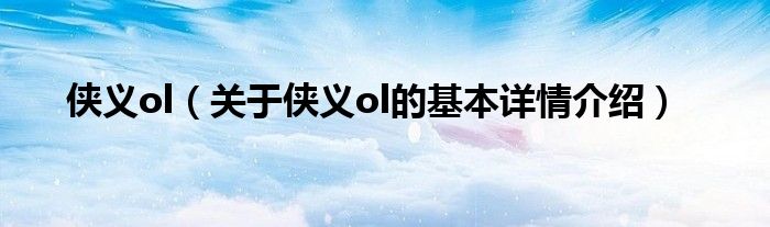 本文关于侠义ol的基本详情介绍就讲解完毕,希望对大家有所帮助。