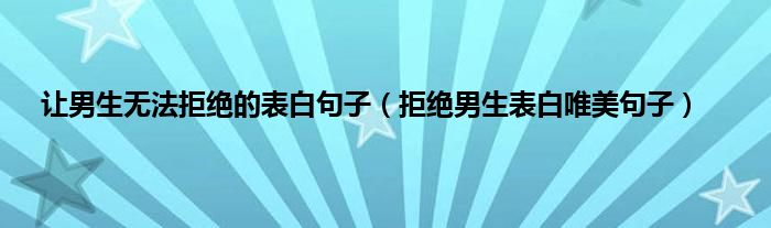 大家好,小问来为大家解答以上问题。让男生无法拒绝的表白句子,拒绝男生表白唯美句子这个很多人还不知道,现在让我们一起来看看吧!
