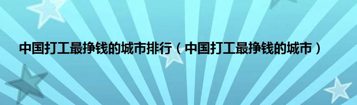 大家好,小问来为大家解答以上问题。中国打工最挣钱的城市排行,中国打工最挣钱的城市这个很多人还不知道,现在让我们一起来看看吧!