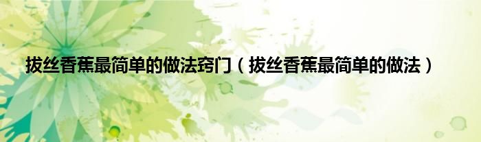 大家好,小问来为大家解答以上问题。拔丝香蕉最简单的做法窍门,拔丝香蕉最简单的做法这个很多人还不知道,现在让我们一起来看看吧!