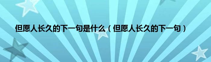 大家好,小问来为大家解答以上问题。但愿人长久的下一句是什么,但愿人长久的下一句这个很多人还不知道,现在让我们一起来看看吧!