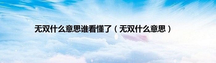 大家好,小问来为大家解答以上问题。无双什么意思谁看懂了,无双什么意思这个很多人还不知道,现在让我们一起来看看吧!