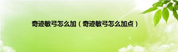 以上就是【奇迹敏弓怎么加,奇迹敏弓怎么加点】相关内容。