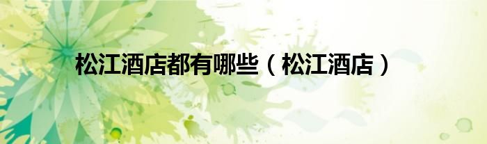 大家好,小问来为大家解答以上问题。松江酒店都有哪些,松江酒店这个很多人还不知道,现在让我们一起来看看吧!