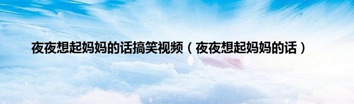 大家好,小问来为大家解答以上问题。夜夜想起妈妈的话搞笑视频,夜夜想起妈妈的话这个很多人还不知道,现在让我们一起来看看吧!