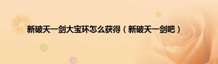 大家好,小问来为大家解答以上问题。新破天一剑大宝环怎么获得,新破天一剑吧这个很多人还不知道,现在让我们一起来看看吧!