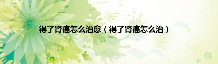 本文,得了肾癌怎么治愈,得了肾癌怎么治到此就分享完毕,希望对大家有所帮助。